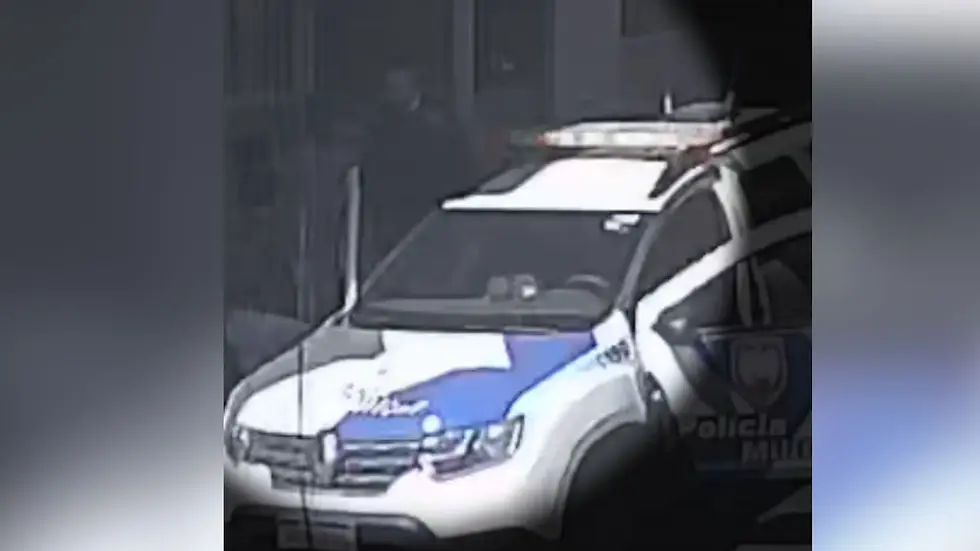 Quando a viatura estaciona na frente delas, o casal se levanta e começa a conversar com os agentes, momento em que Daniele entrega um papel para um deles. Em seguida, a viatura em que está o cabo Vale aparece e para fora da área de captação da câmera. Segundo depois, ele e outros quatro colegas de farda surgem.